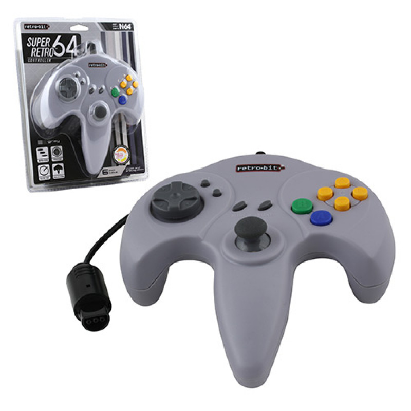N64 Controller Wired Retro64 Controller Solid Gray (Retro-Bit)